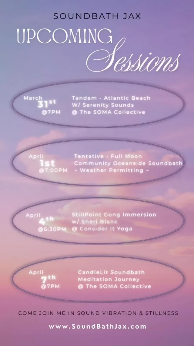 "After my first visit to Soundbath Jax, I knew I was going to add this experience into my monthly self-care routine. My friend best described it as "a massage for your brain." Giving myself space to quiet the never-ending voices in my head is the biggest gift that Soundbath has given me!"